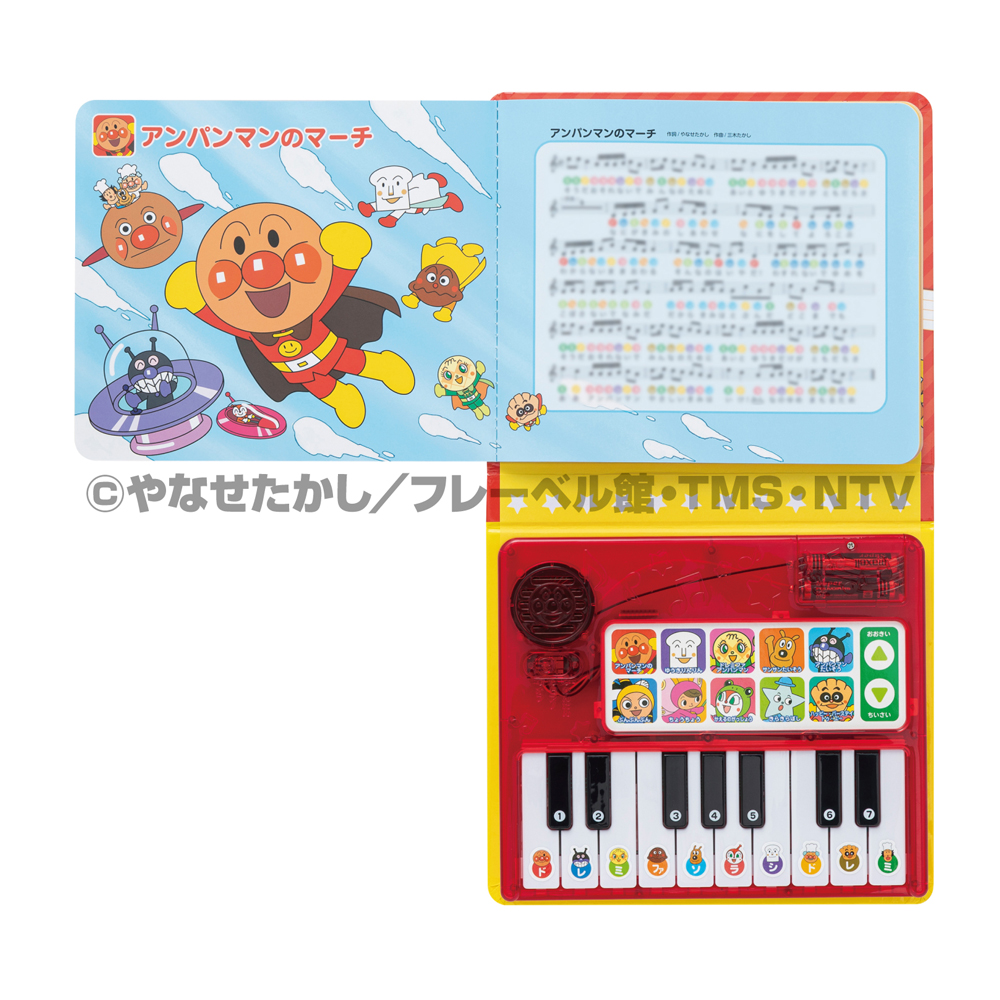 アンパンマンと一緒にピアノで遊ぼう! アンパンマンの歌5曲と童謡5曲、計10曲のお手本メロディつき。鍵盤にはアンパンマンたちのドレミマークが付いているので、ピアノをひくのもワクワク! 初めてでも上手にひける簡単モードもついているので、小さなお子様でも楽しくピアノに親しめます。