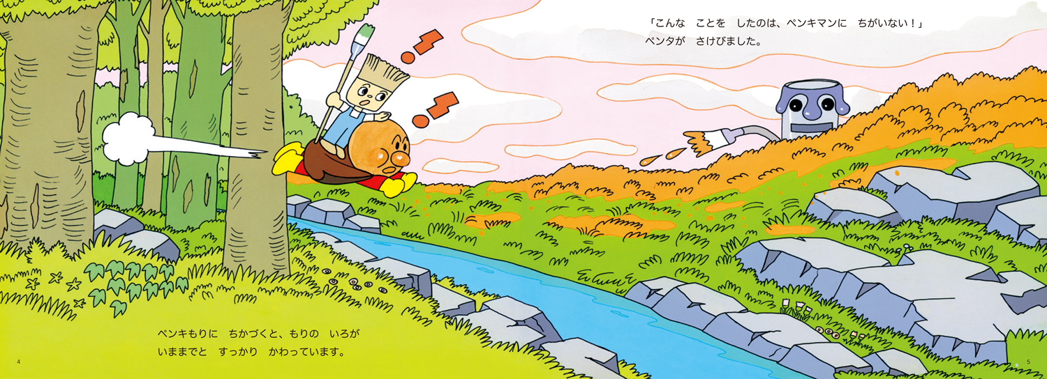 ペンタが森をどんなにきれいな色に塗っても、ペンキマンがやってきて変な色に塗りかえてしまいます。