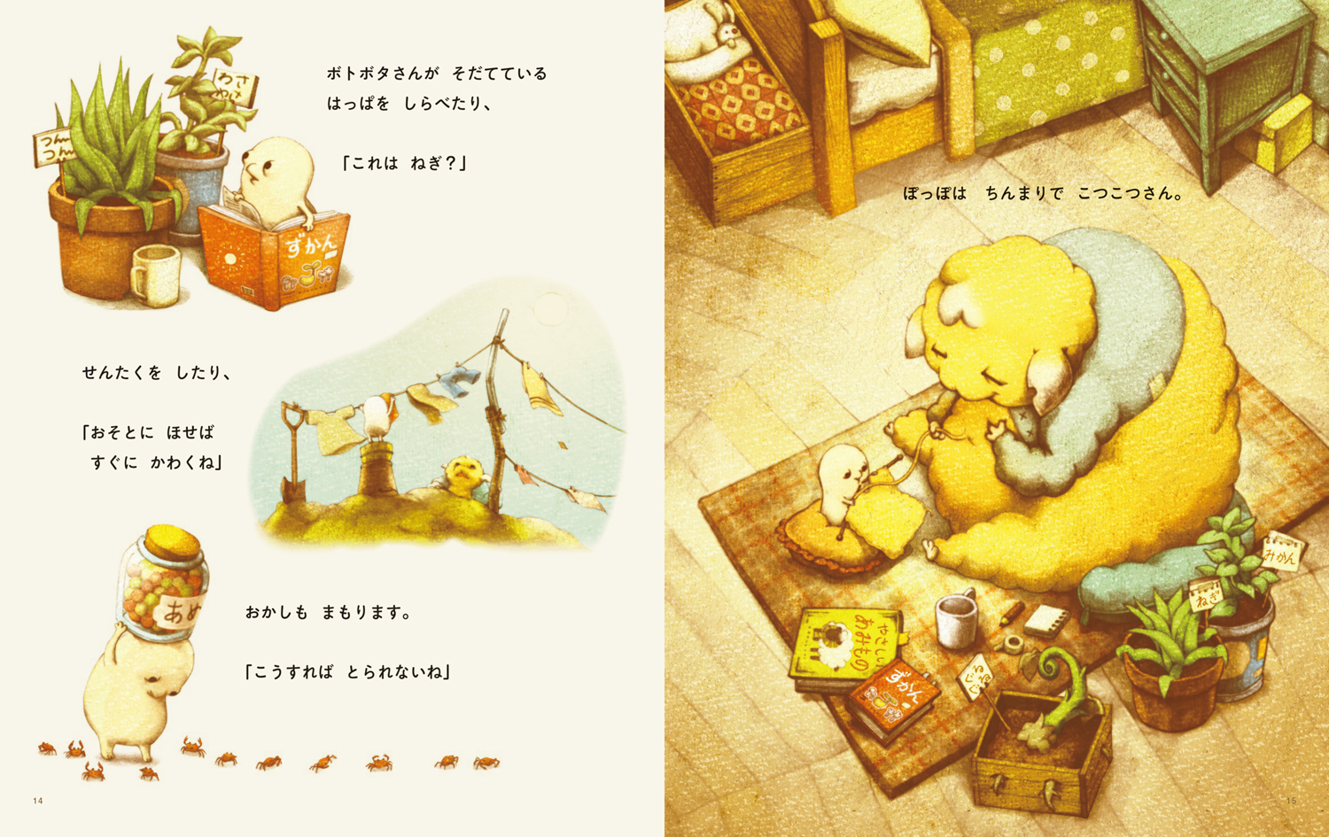 ▲「もしゃもしゃでのんびりさん」なボトボタさんと、「ちんまりでこつこつさん」なぽっぽ。