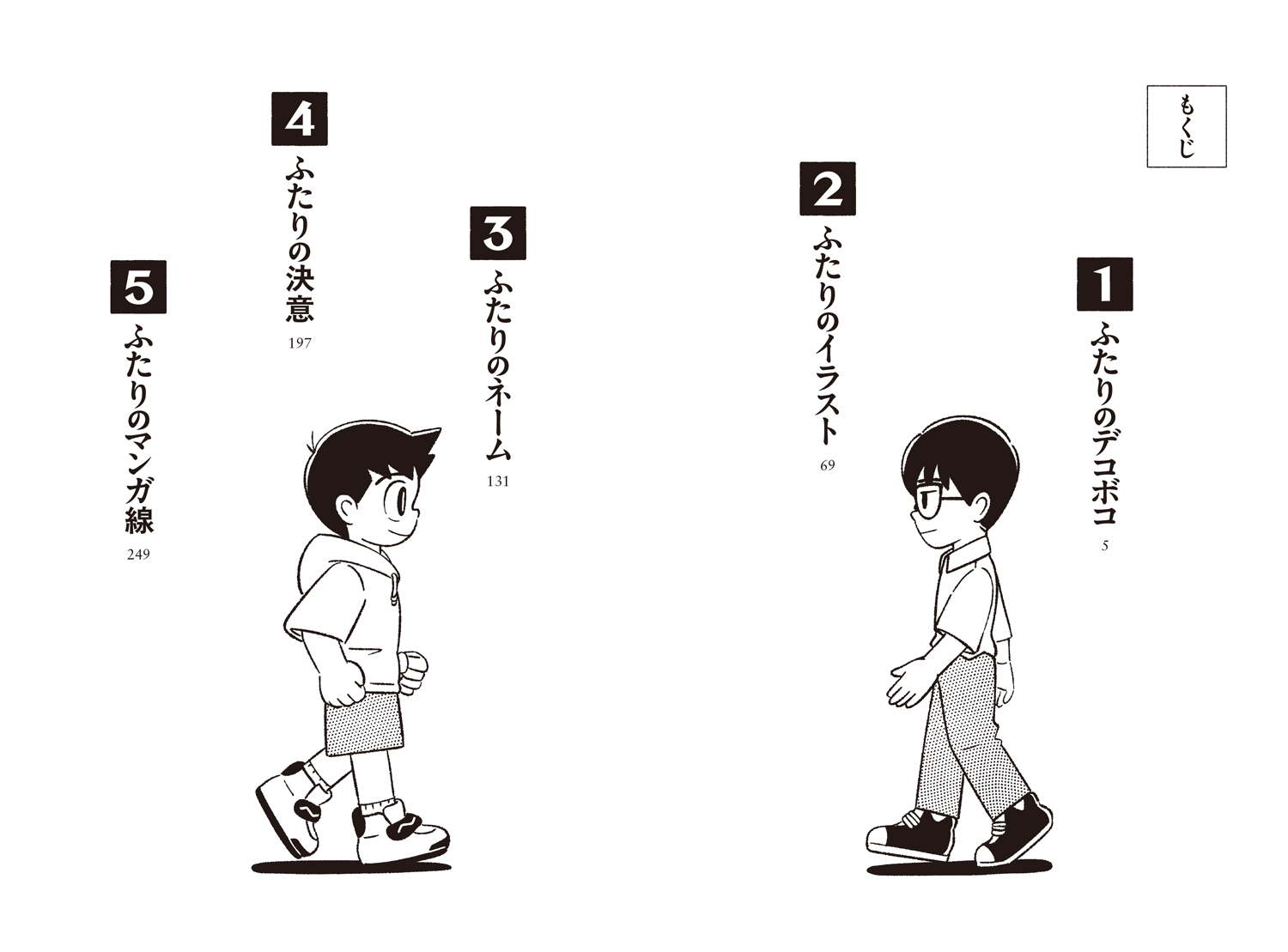 ▲リアルなふたりの絵に各章のタイトル「ふたりの〜」が並びます。