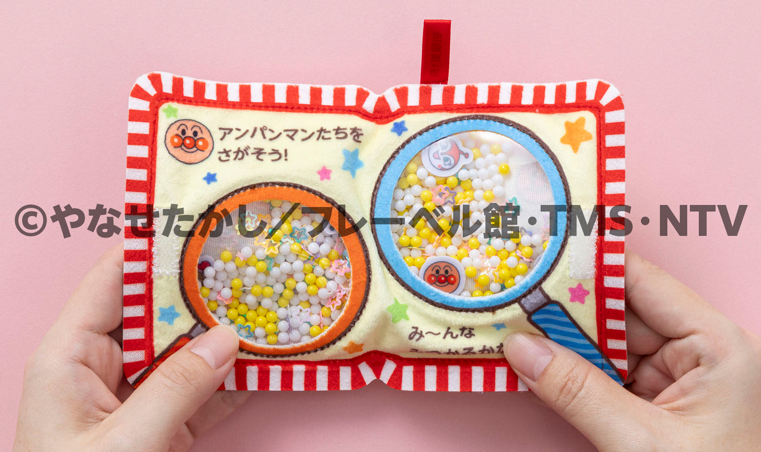 もんだりふったりして、ビーズの中に隠れているアンパンマンたちをさがします。